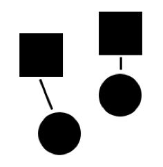 Khi 2 thành phần được kết nối với nhau, chúng được xem là 1 nhóm – đây là ý tưởng chung của nguyên tắc kết nối. Nguyên tắc này mạnh hơn nguyên tắc giống nhau. Trong ví dụ dưới đây, chúng ta sẽ thấy 2 nhóm, mỗi nhóm gồm 1 hình vuông 1 hình tròn, thay vì thấy 1 nhóm 2 hình tròn và 1 nhóm 2 hình vuông.