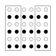 Nguyên tắc đối xứng ra đời dựa trên lý thuyết Gestalt. Nghiên cứu cho thấy rằng, người dùng sẽ cảm thấy thích hơn khi nội dung được chia thành các nhóm đối xứng. Trong ảnh dưới, hầu hết chúng ta sẽ thấy 3 cặp kí tự, thay vì 6 kí tự đơn lẻ.